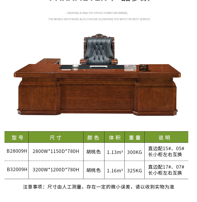胡桃色油漆實木大班臺B32009H